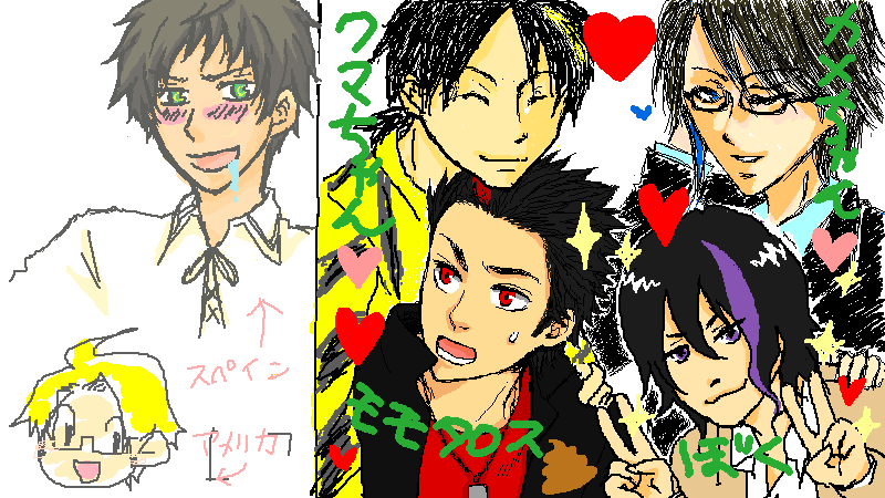 ヘタリア組→えと、ごめん、キャラ分かんない…(爆)多分米と英…!?(死)