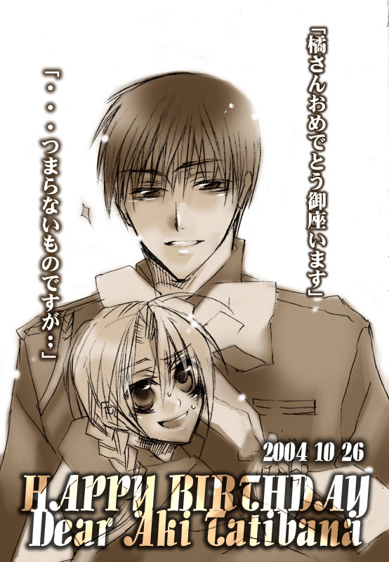 夜上真琴さまより、誕生祝いということで! こんなにこんなに素敵なロイエドを頂いてしまいました!! 大佐もさることながら、えええエドにリボンが!? というか大佐の台詞が!!えぇえ!? おおお俺がエドを頂いても良いんでスカー!?(動揺) つまらないなんてとんでもない!かなり可愛いんですが!?(かなり動揺) なな何て役得…っ!(爆)今年の誕生日はなんて素晴らしいのでしょう!!(涙) もう最高です、ロイエド!!_| ̄|○(悶絶) しかも知り合って間もないというのに、私めのようなやつに…! 今でも夢のようです! 本当にありがとうございましたー!! 申し訳なく縮小しようかとも思ったのですが、これは原寸で載せねば!と思ったので(笑) あぁもう死んでもいいです。(本気) このお返しは必ず…!! ブラウザでお戻り下さい。 |